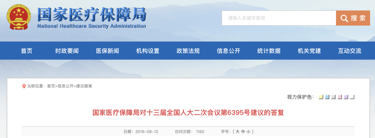 8月12日,據(jù)國家醫(yī)保局官網(wǎng)消息,醫(yī)保局發(fā)布了《對(duì)十三屆全國人大二次會(huì)議第6395號(hào)建議的答復(fù)醫(yī)保函〔2019〕80號(hào)》。
